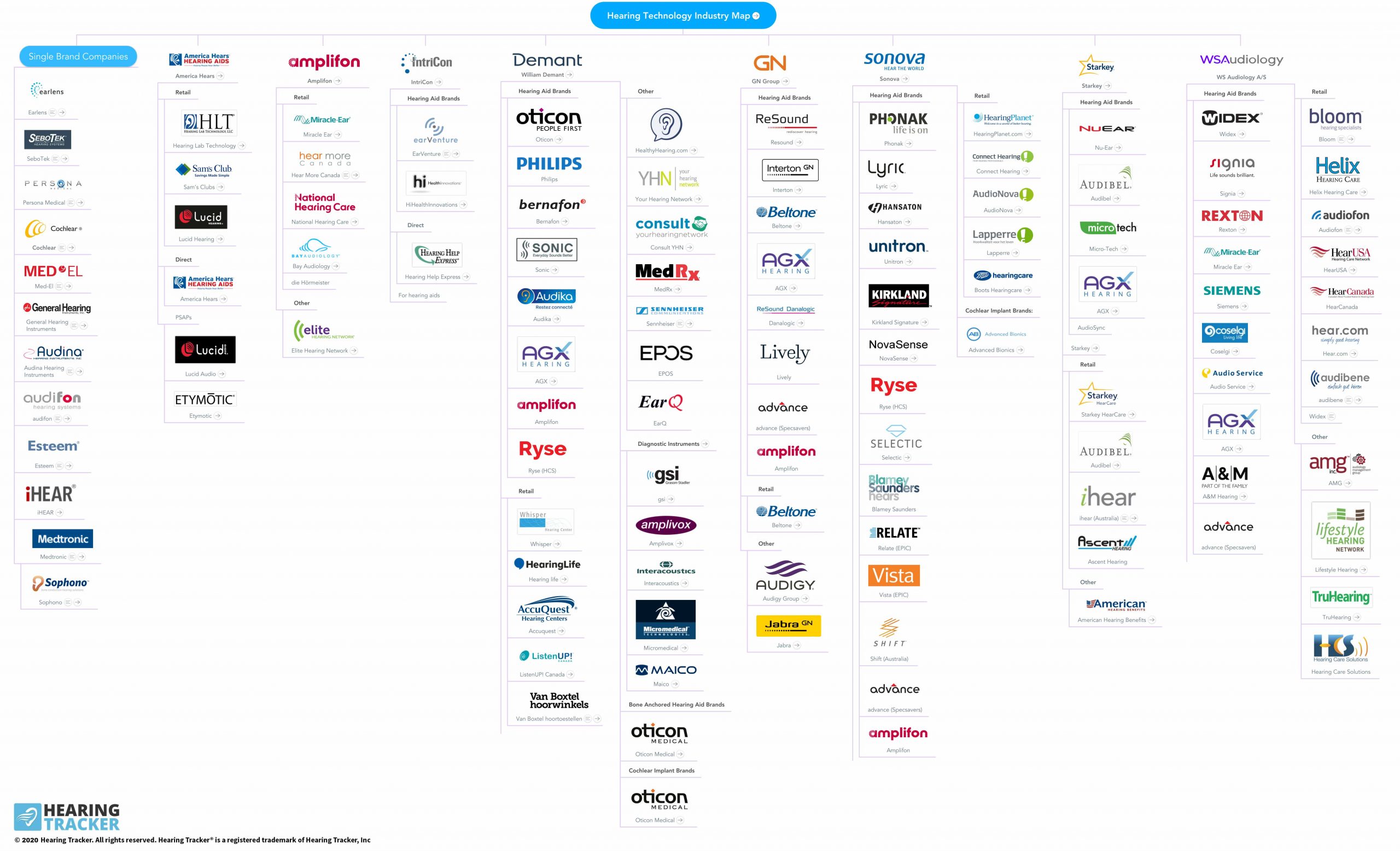 Blagovnih znamk slušnih aparatov je kar nekaj. Praktično je nemogoče navesti najboljšega proizvajalca slušnih aparatov, saj za slušni aparat znamke X ni zagotovo, da bo ta znamka najboljša tudi vam ali nekomu, ki bo prišel za vami. Pa vendar, če bi že hoteli določenemu proizvajalcu nadeti naziv "najboljšega," ste še vedno lahko bistveno bolj zadovoljni s slušnim aparatom "slabšega" proizvajalca, kjer so si vzeli več časa za prilagajanje slušnih aparatov in upoštevanje vaših želja in opazk med testiranjem slušnih aparatov. V spodnji tabeli so navedeni vsi mednarodni koncerni proizvajalcev slušnih aparatov.